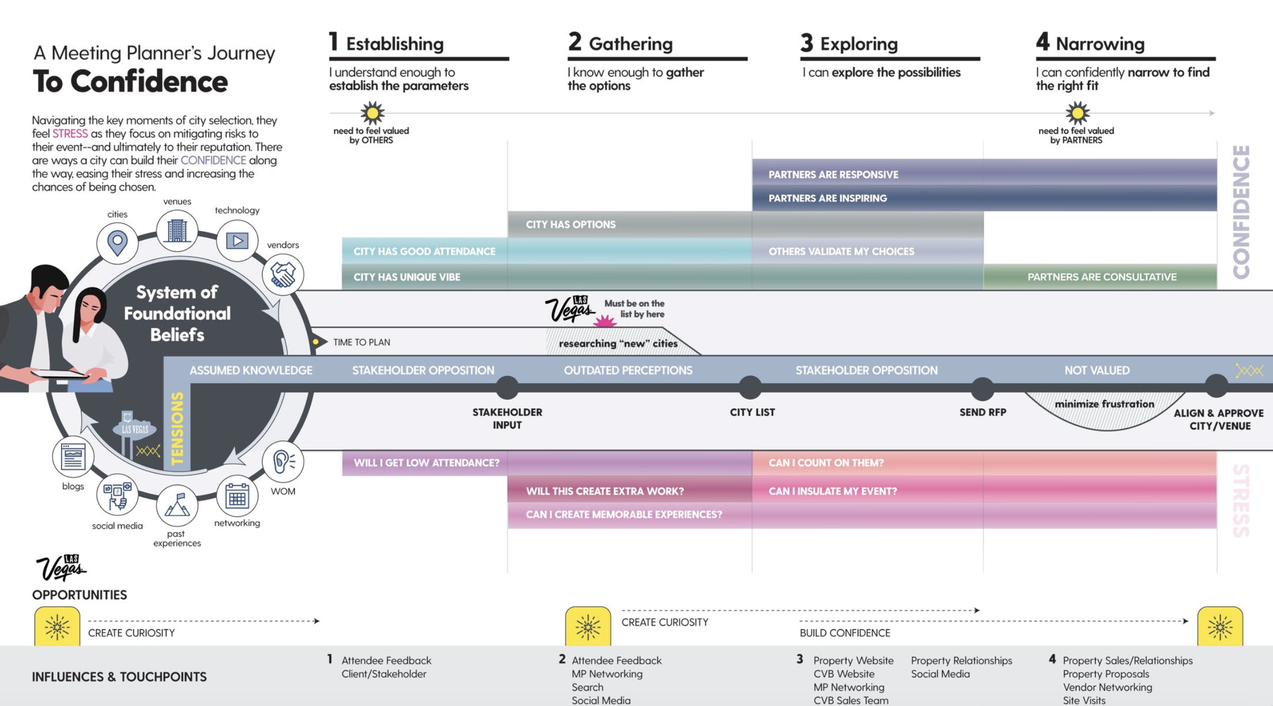 Secondary research mapped out the Meeting Planner’s journey in selecting a destination for their event, identifying key points where they are most likely to seek information or engage with a team member. The four stages of the Meeting Planner’s destination and venue selection process are as follows: